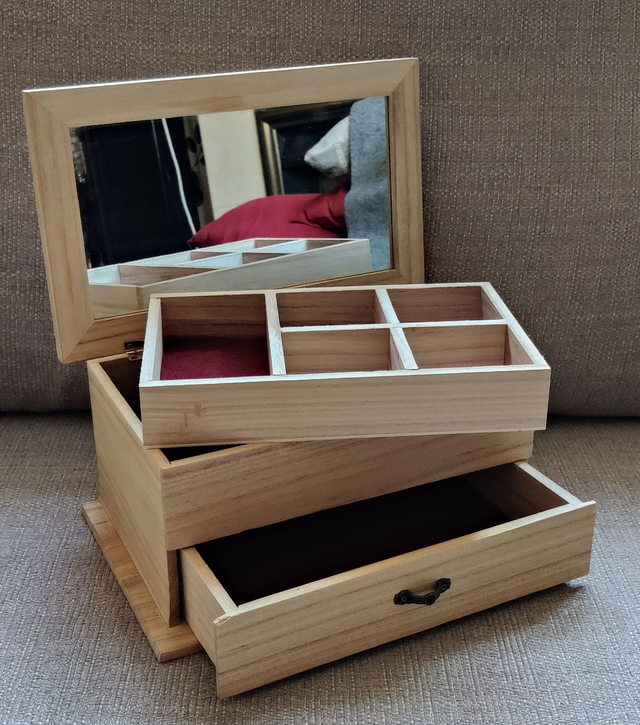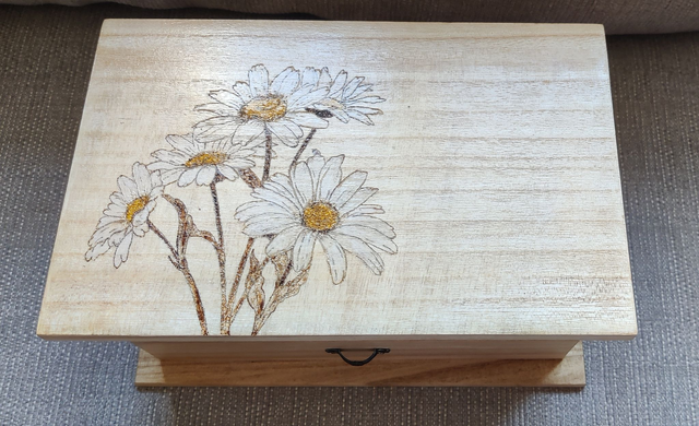 Wooden jewelry box with mirror and draw, decorated with daisies