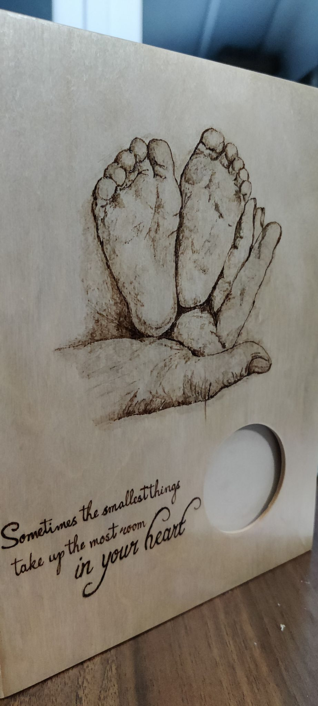 Book shaped memory box decorated with newborn baby feet
